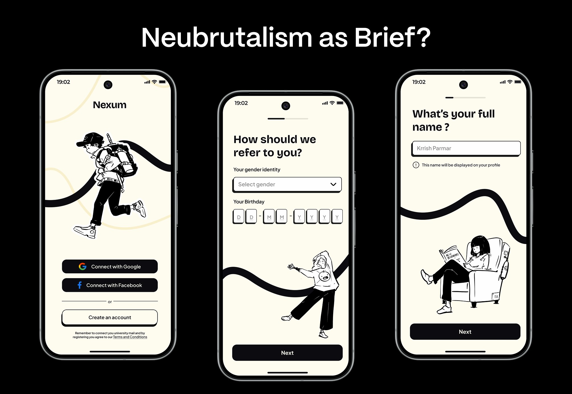 Why neubrutalism? Gen Z doesn't trust polished. Neubrutalism — raw borders, flat colour, bold type, deliberate imperfection — feels honest. Gumroad built credibility with a generation that rejects corporate gloss. A platform living inside a university should feel like it belongs there, not above it.
