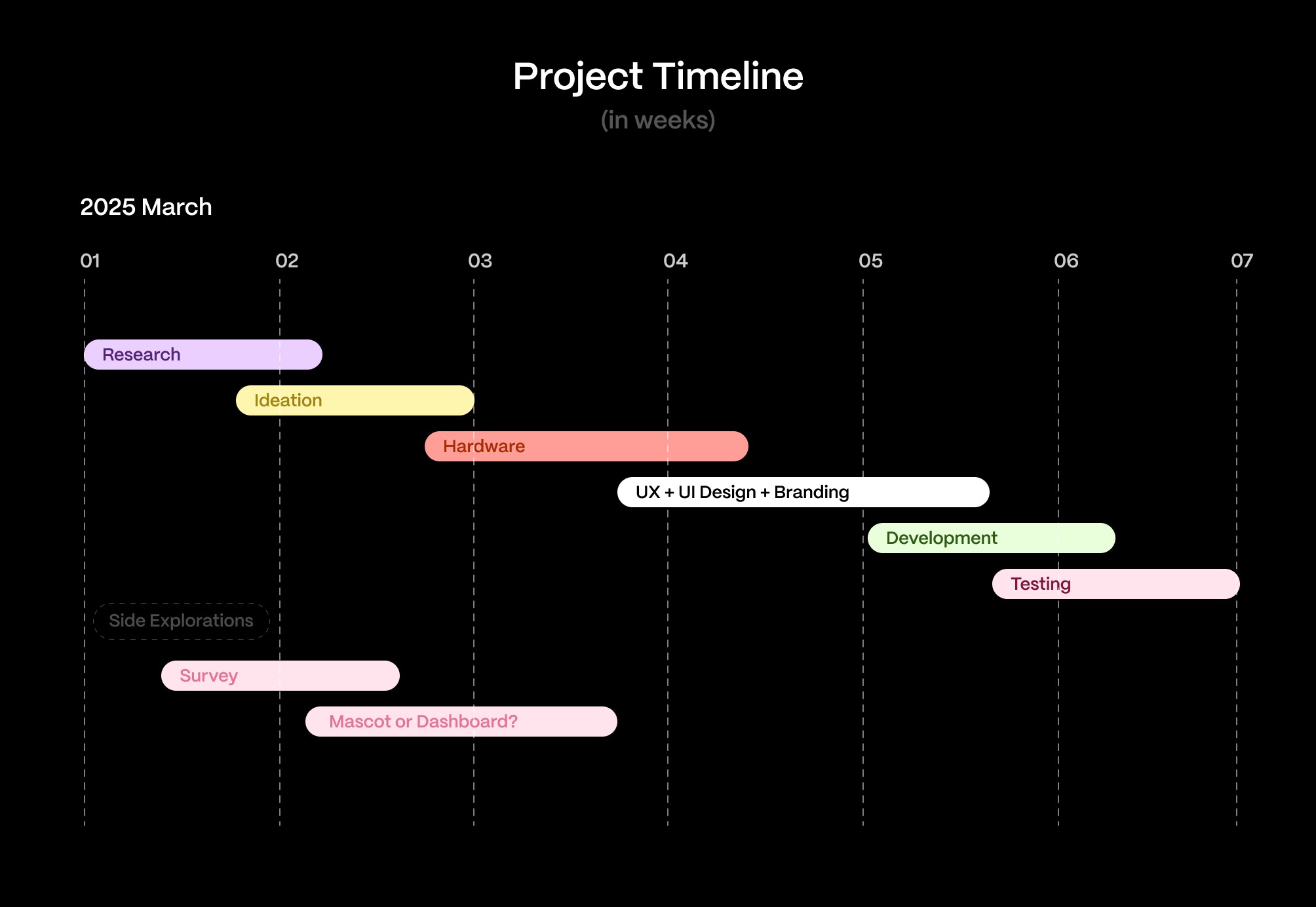 But early research kept pointing elsewhere. The people we designed for weren't neglecting their plants because they didn't care. They were neglecting them because life moved fast and a pot in the corner was easy to forget. The real design problem wasn't sensors. It was emotional distance.